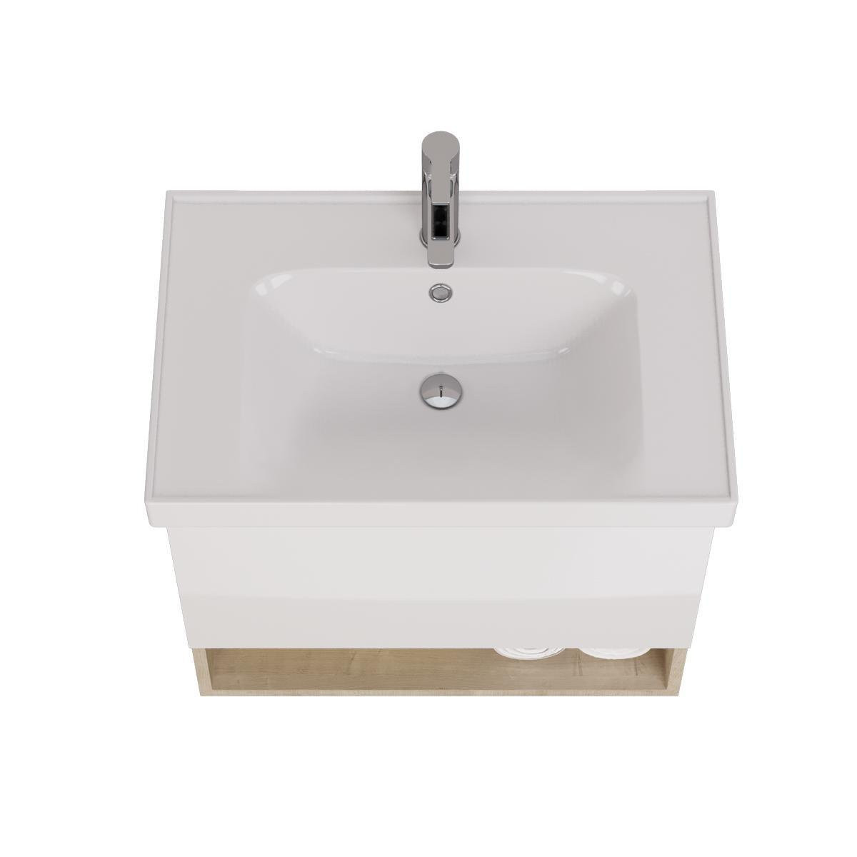 Тумба с раковиной подвесная Dreja Perfecto 70 см, дуб эврика/белый