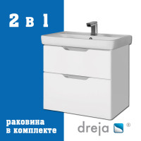 Тумба под раковину подвесная Dreja Q 70 см, белый. Фурнитура: Hettich. Компоновка: 2 ящика. Дополнительные функции: встроенный органайзер в верхнем ящике. Монтаж: подвесной. Раковина арт.: 191645 в комплекте.