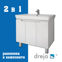 Тумба под раковину подвесная Dreja Q Plus (D) 80 см, белый. Фурнитура: Hettich. Компоновка: 3 дверцы, 2 полки. Монтаж: подвесной/напольный. Для монтажа необходимо закрепить тумбу к стене и использовать входящие в комплект поставки опоры. Раковина арт.: 192185 в комплекте.