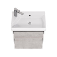 Тумба под раковину подвесная Dreja Slim 55 см, белый/бетон. Фурнитура: Boyard. Компоновка: 2 ящика. Монтаж: подвесной/напольный. Раковина арт.: 17055-KL в комплекте.