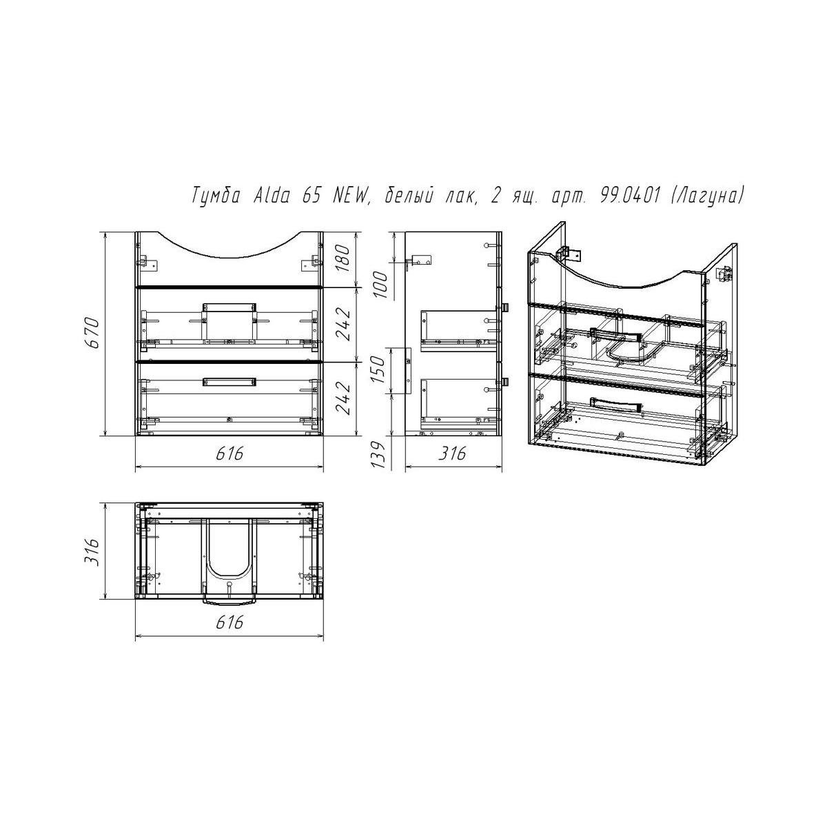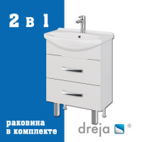 Тумба под раковину подвесная/напольная Dreja Alda 65 см, белый. Фурнитура: Hettich. Компоновка: 2 ящика. Монтаж: подвесной/напольный. Возможен напольный монтаж - необходимо отдельно приобрести ножки Dreja арт.: 99.9811. Раковина арт.: 192529 в комплекте.