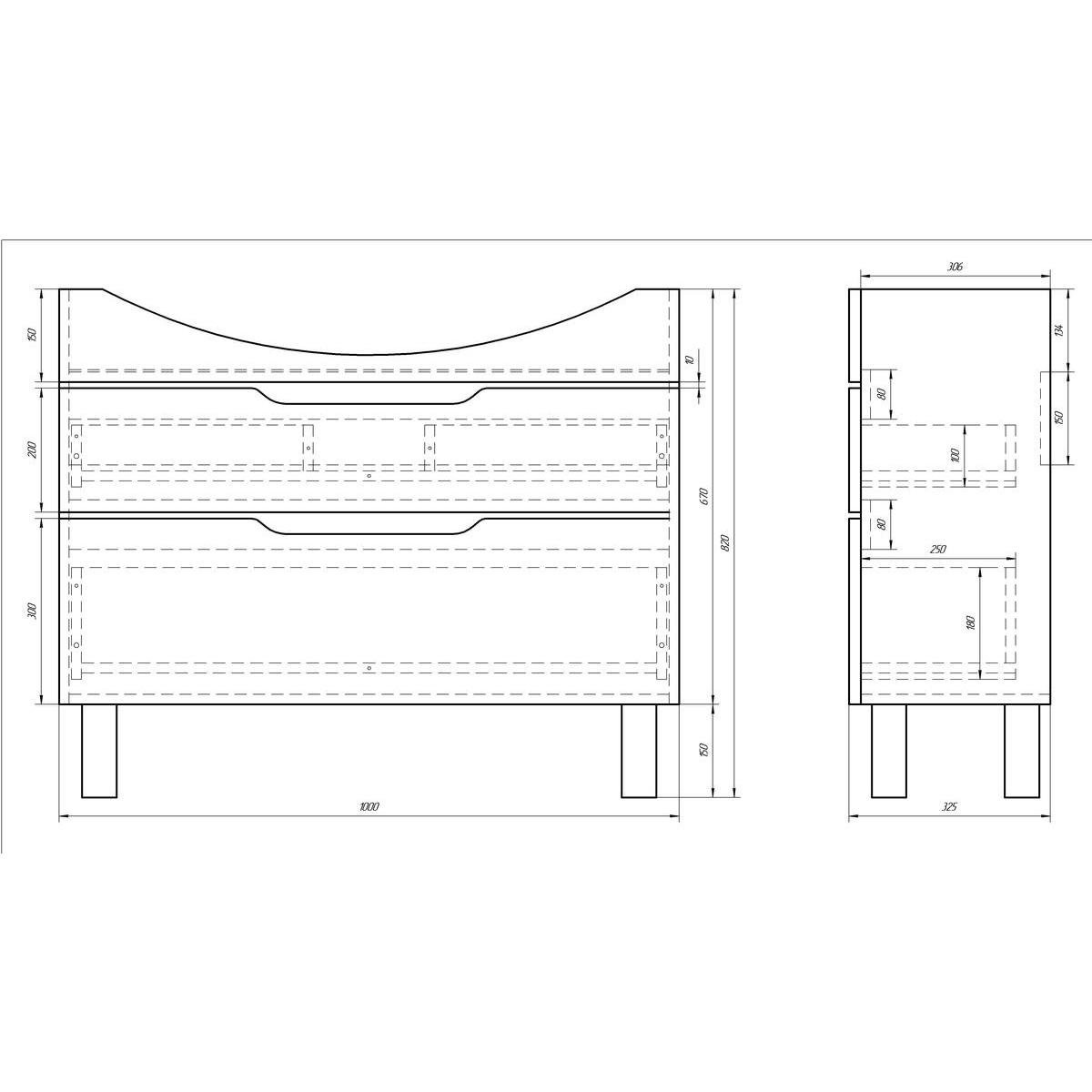 Тумба под раковину подвесная/напольная Dreja Laguna Plus 105 см, белый. Фурнитура: Hettich. Компоновка: 2 ящика. Дополнительные функции: встроенный органайзер в верхнем ящике. Монтаж: подвесной/напольный. Для монтажа необходимо закрепить тумбу к стене и использовать входящие в комплект поставки опоры. Раковина арт.: 191683 в комплекте.