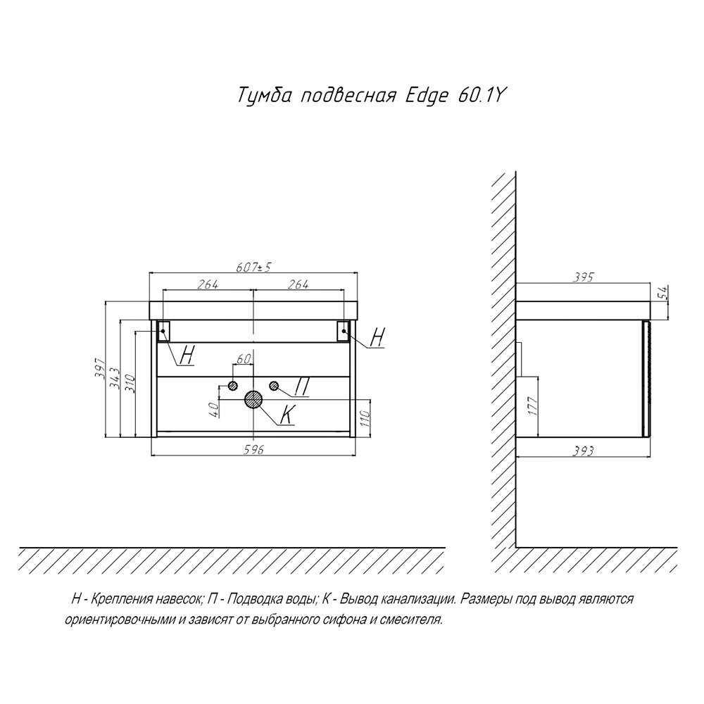 Тумба с раковиной подвесная Velvex Edge tp.EDG.9696.60.1Y белый глянец, 60 см: 1 выдвижной ящик с механизмом открывания push-to-open. Раковина в комплекте.