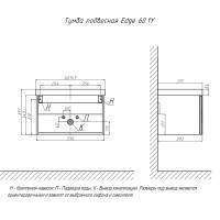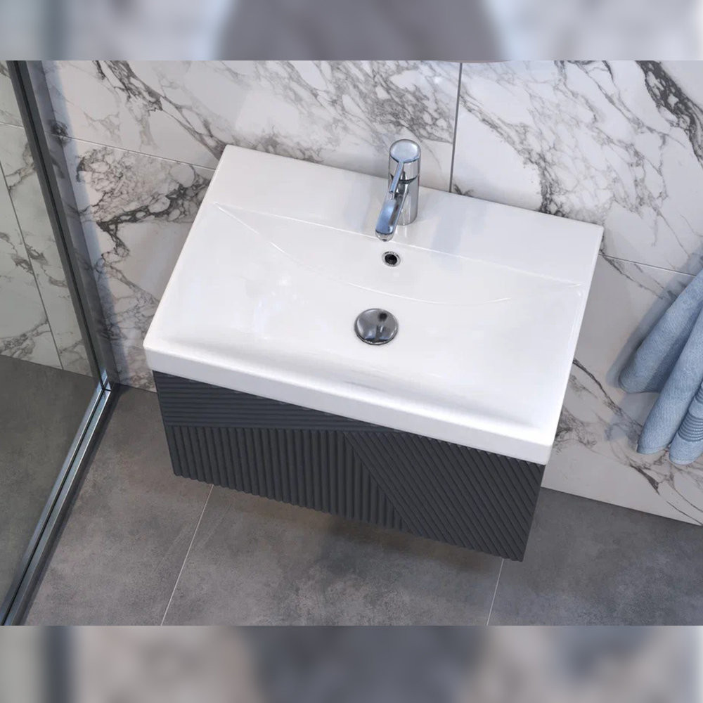 Тумба с раковиной подвесная Velvex Edge tp.EDG.9696.60.1Y графит, 60 см: 1 выдвижной ящик с механизмом открывания push-to-open. Раковина в комплекте.