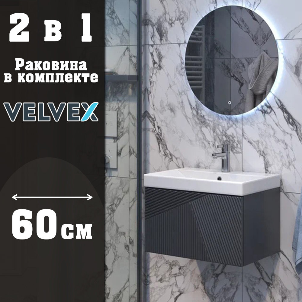 Тумба с раковиной подвесная Velvex Edge tp.EDG.9696.60.1Y графит, 60 см