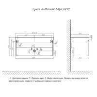Тумба с раковиной подвесная Velvex Edge tp.EDG.9696.80.1Y графит, 80 см: 1 выдвижной ящик с механизмом открывания push-to-open. Раковина в комплекте.