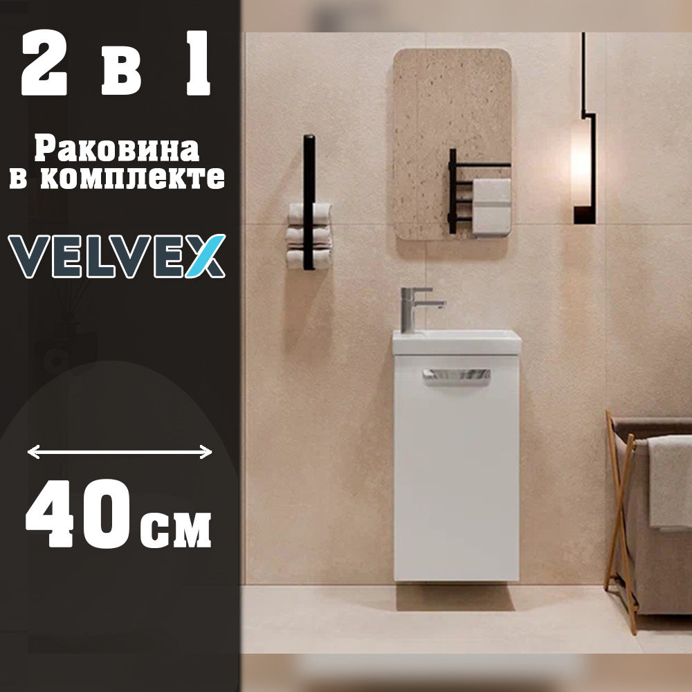 Тумба с раковиной подвесная Velvex Estea tp.EST.MOD.40.1D, 40 см: 1 распашная дверца, петли с доводчиками, 1 полка из ЛДСП. Раковина в комплекте.