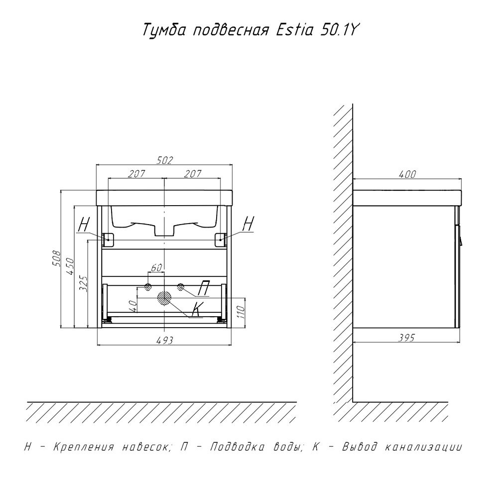 Тумба с раковиной подвесная Velvex Estea tp.EST.MOD.50.1Y, 50 см