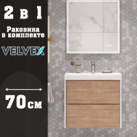 Тумба с раковиной подвесная Velvex Gesso tp.GES.9696.70.2Y белый матовый/дуб сонома, 70 см