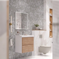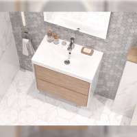 Тумба с раковиной подвесная Velvex Gesso tp.GES.9696.70.2Y белый матовый/дуб сонома, 70 см: 2 выдвижных ящика с механизмом открывания push-to-open. Раковина в комплекте.