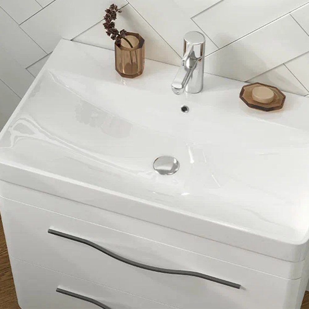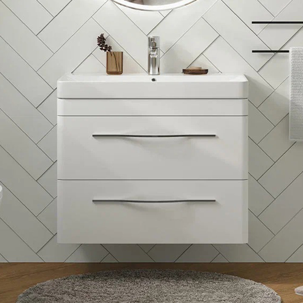 Тумба с раковиной подвесная Velvex Jill tp.JIL.9595.80.2Y белый матовый, 80 см: 2 выдвижных ящика с механизмом плавного закрывания. Раковина в комплекте.