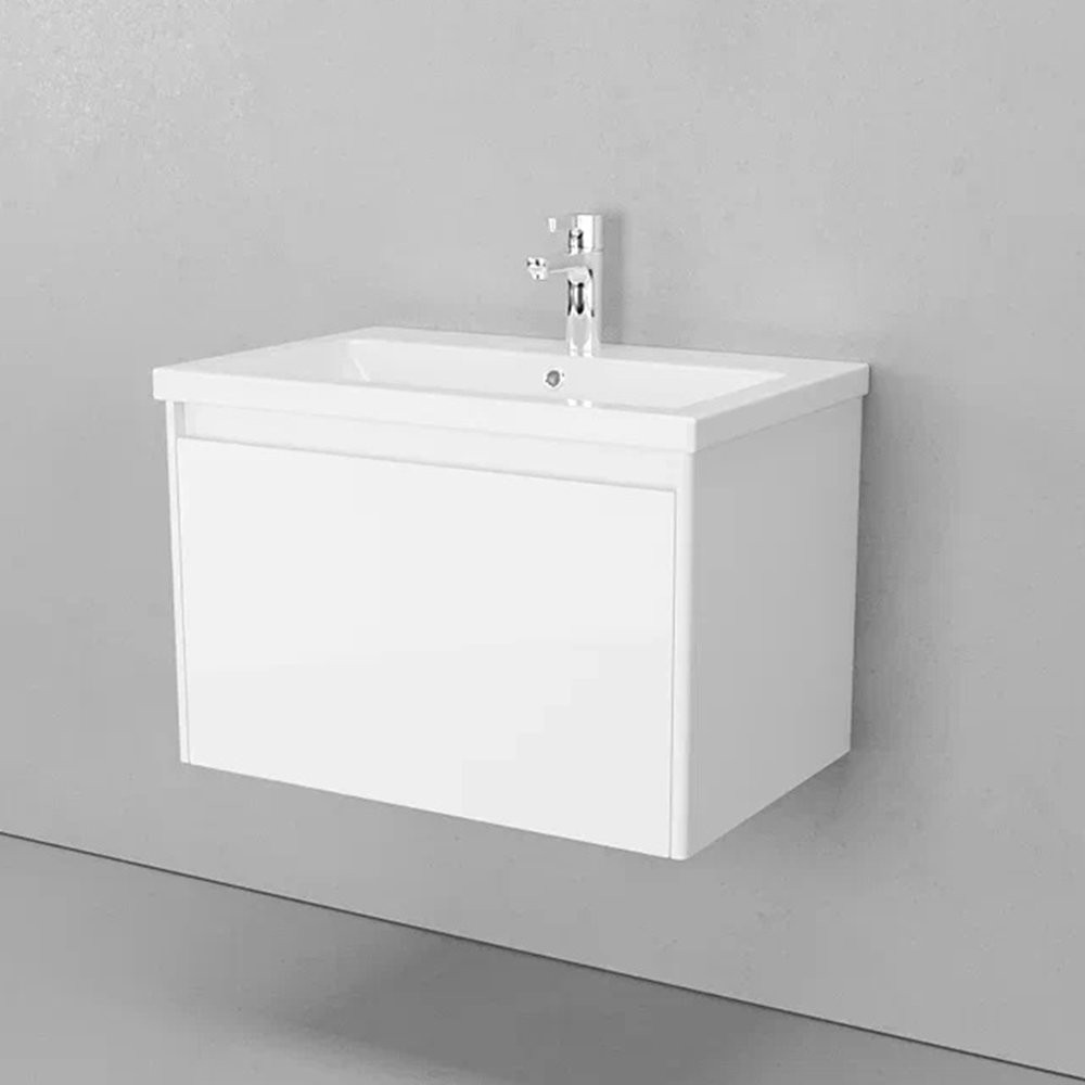 Тумба с раковиной подвесная Velvex Klaufs tp.KLA.COM.70.1Y, 70 см: 1 выдвижной ящик, выдвижной органайзер. Раковина в комплекте.