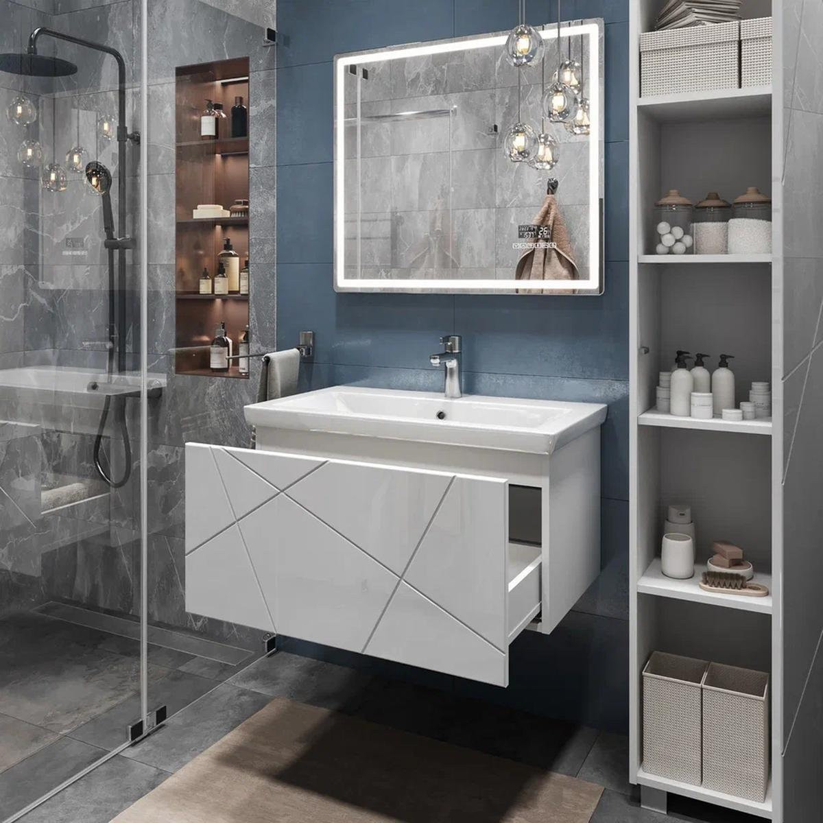 Тумба с раковиной подвесная VIGO Geometry 035, 80 см. Раковина в комплекте.