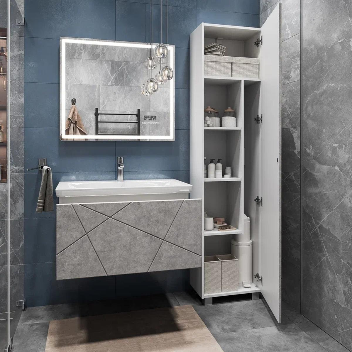 Тумба с раковиной подвесная VIGO Geometry 035 бетон, 80 см. Раковина в комплекте.