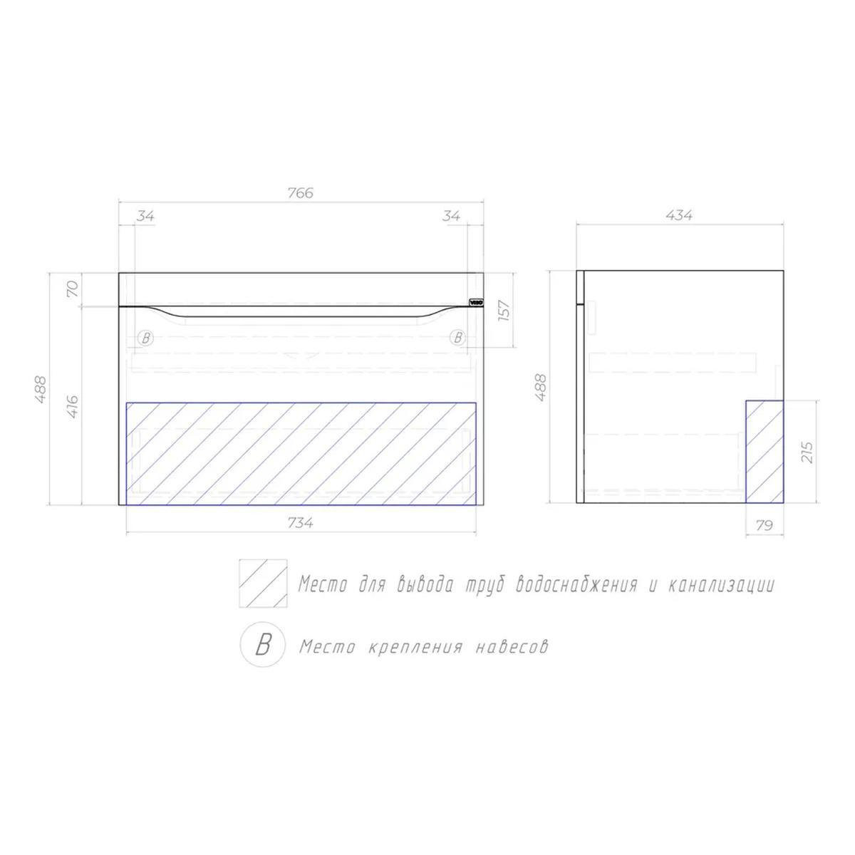 Тумба с раковиной подвесная VIGO Grani 166, 80 см