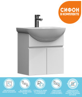 Тумба с раковиной подвесная VIGO Wing tp.WIN.BAL.50.2D белый, 50 см. Раковина в комплекте. 2 дверцы. Специальный сифон Vigo в комплекте. Материал корпуса и фасада: влагостойкая ЛДСП Дверцы: петли с механизмом плавного закрывания Отсутствие лицевой фурнитуры – интегрированная в фасад ручка.