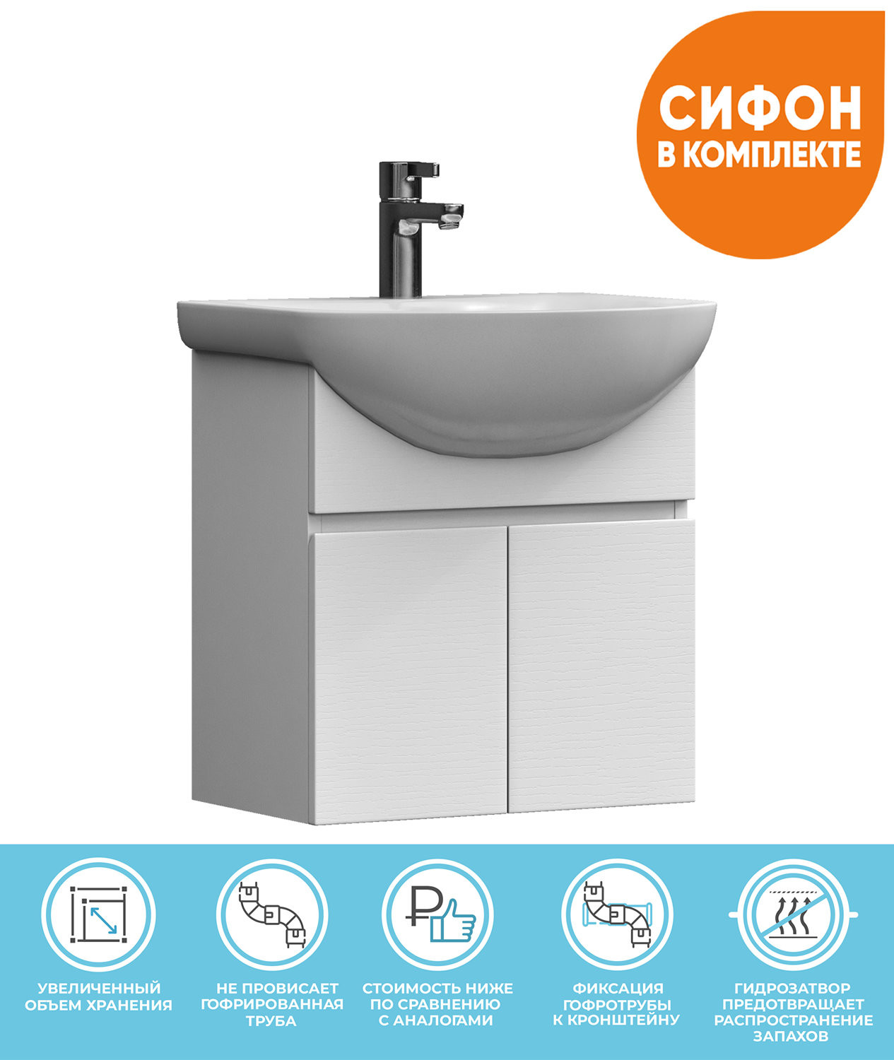 Комплектация: тумба, сифон, раковина;
