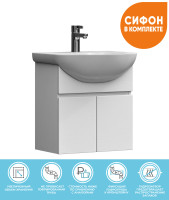 Тумба с раковиной подвесная VIGO Wing tp.WIN.BAL.60.2D белый, 60 см. Раковина в комплекте. 2 дверцы. Специальный сифон Vigo в комплекте. Материал корпуса и фасада: влагостойкая ЛДСП Дверцы: петли с механизмом плавного закрывания Отсутствие лицевой фурнитуры – интегрированная в фасад ручка.