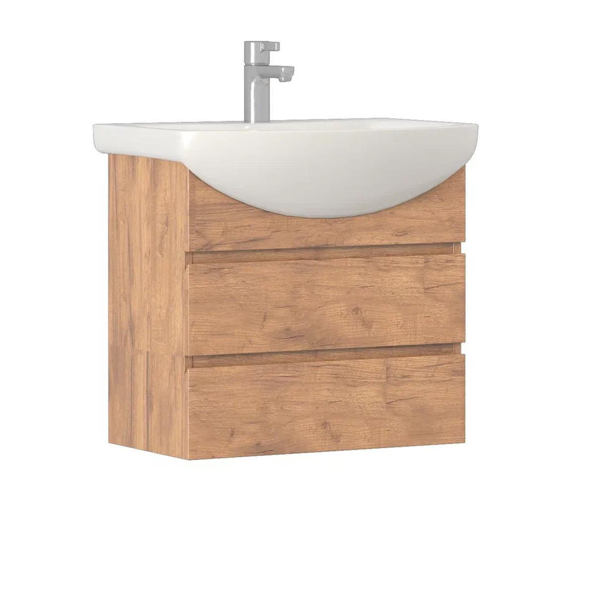 Тумба с раковиной подвесная VIGO Wing tp.WIN.BAL.60.2Y дуб золотой, 60 см. Раковина в комплекте.