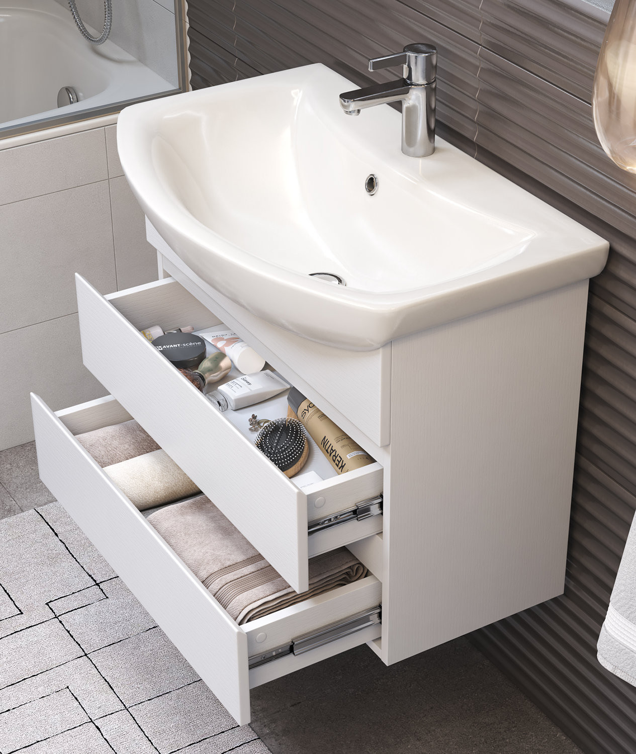 Тумба с раковиной подвесная VIGO Wing tp.WIN.BAL.70.2Y белый, 70 см. Раковина в комплекте. 2 ящика. Специальный сифон Vigo в комплекте. Материал корпуса и фасада: влагостойкая ЛДСП Ящики: направляющие полного выдвижения Отсутствие лицевой фурнитуры – интегрированная в фасад ручка.