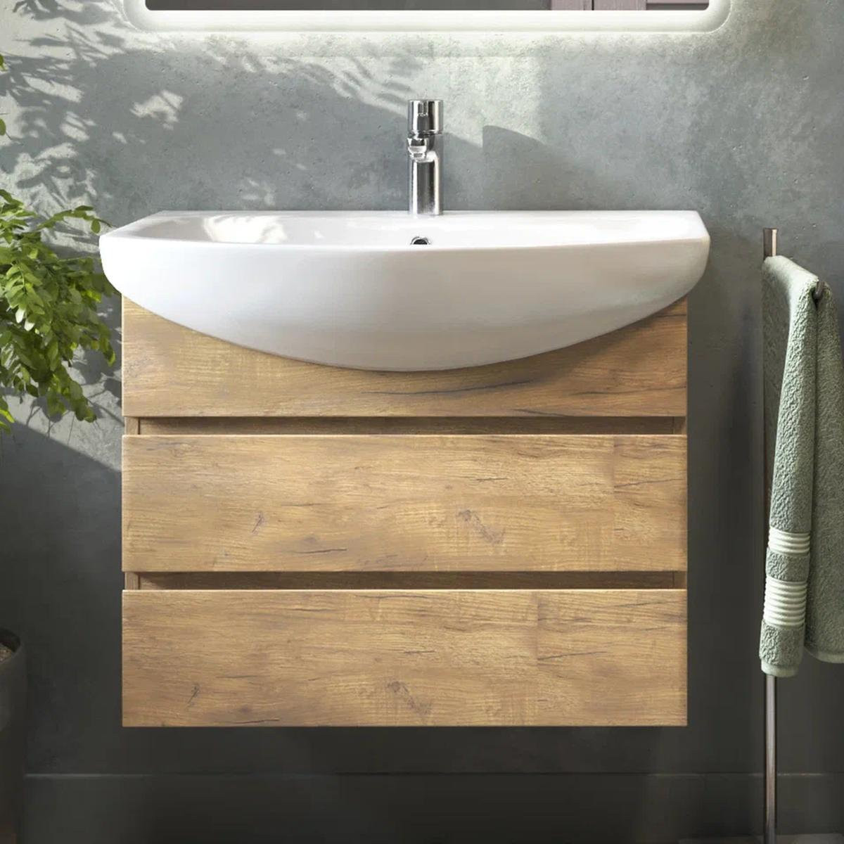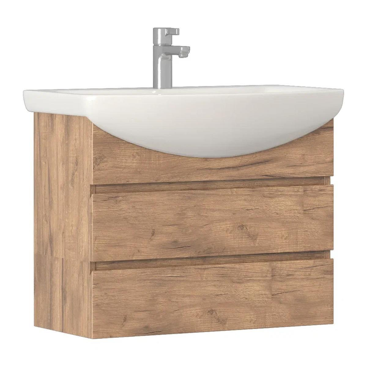 Тумба с раковиной подвесная VIGO Wing tp.WIN.BAL.70.2Y дуб золотой, 70 см. Раковина в комплекте.