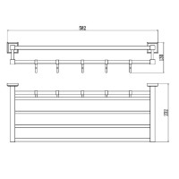Комплектация: полка для полотенец, 5 крючков на планке, 2 пластины для крепления полки к стене, 4 шурупа, 4 дюбеля, шестигранный ключ для монтажа, фирменная упаковка savol;
