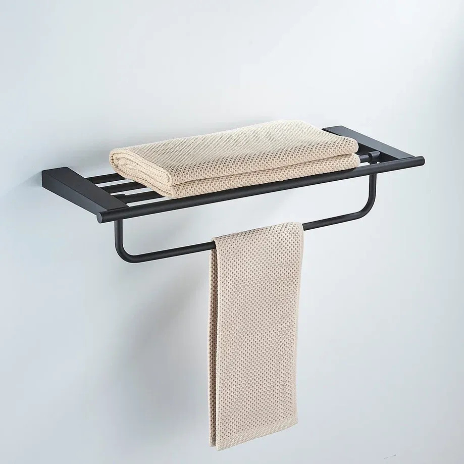 Полка для полотенец Shevanik SG5708H в черном матовом цвете — это идеальное сочетание функциональности и эстетики для вашей ванной комнаты или кухни. Изготовленная из прочной нержавеющей стали, она гарантирует долговечность и устойчивость к влаге, что делает её отличным выбором для помещений с повышенной влажностью. Современный минималистичный дизайн придаёт полке стильный вид, позволяя ей гармонично вписаться в любой интерьер. Настенный монтаж обеспечивает простоту установки, а комплект, включающий как саморезы, так и дюбели, позволяет выбрать оптимальный способ крепления в зависимости от типа стены. Полка Shevanik не только удобна в использовании, но и служит элегантным дополнением к общему дизайну помещения, подчёркивая ваш безупречный вкус.