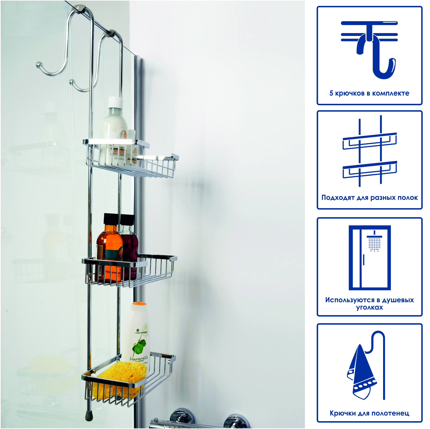 | | Пластиковые уплотнители необходимые, чтобы бесшумно закрепить полку на верхней части душевого уголка и не поцарапать его. |