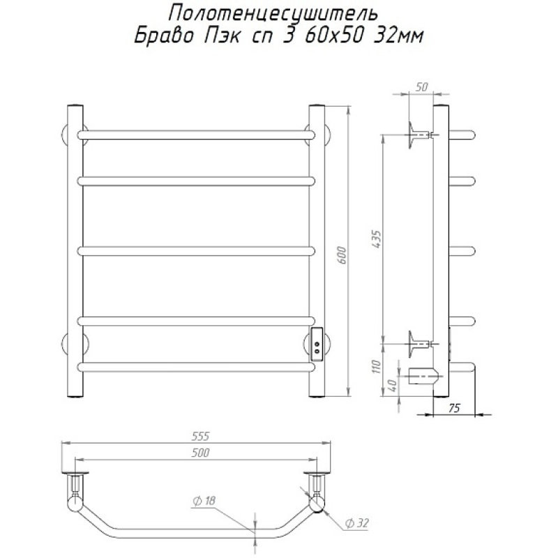 Полотенцесушитель Браво Пэк сп 3 60х50 32 мм. Коллекция: Браво Пэк сп серия 3. Тип: электрический. Форма: лесенка. Мощность (Вт): не более 100Вт. Количество перекладин: 5. Материал: нержавеющая сталь AISI 201. Подключение: скрытое электрическое соединение/электропровод с вилкой.