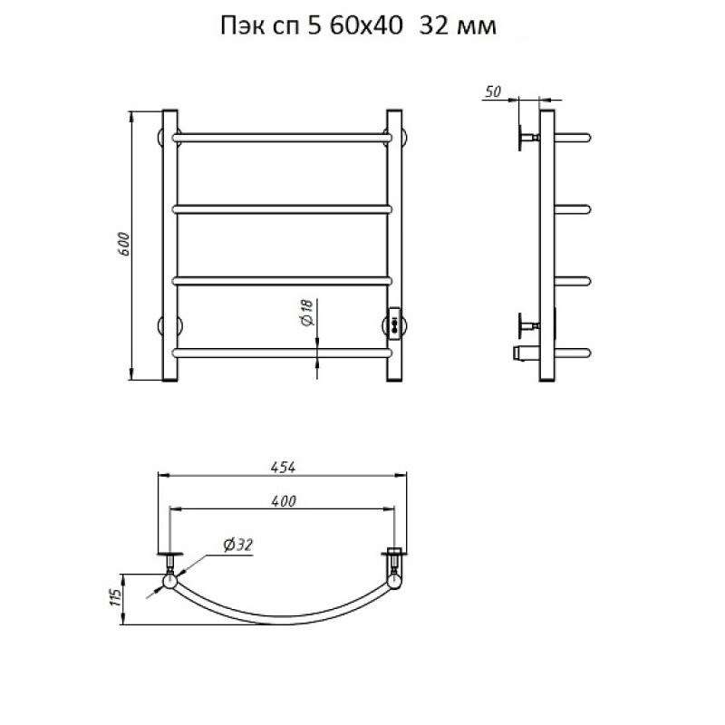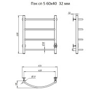 Полотенцесушитель Пэк сп 5 60х40 32 мм. Полотенцесушитель электрический кабельный (ПЭК) изготавливается из нержавеющей стали AISI 201 с последующей полировкой. Коллекция: ПЭК сп 5. Тип: электрический. Внутри корпуса электрического полотенцесушителя проложен гибкий греющий кабель, который нагревает поверхность. Для удобства ПЭК оснащен универсальным подключением. Полотенцесушитель можно подключить к сети питания, как справа, так и слева при помощи шнура с вилкой длиной 70 см и скрытым способом напрямую к проводке, заложенной в инженерную систему дома без использования штатного кабеля. Скрытый монтаж к электропитанию осуществляется через распаячные коробки, установленные справа и слева на коллекторе полотенцесушителя. Панель управления электрическим полотенцесушителей с греющим кабелем позволяет выставлять температурный режим и ограничивать время работы при помощи таймера. ПЭК рассчитан на эксплуатацию с номинальным напряжением 220 В. Форма: лесенка. Мощность (Вт): не более 100Вт. Количество перекладин: 4. Подключение: скрытое электрическое соединение/электропровод с вилкой.
