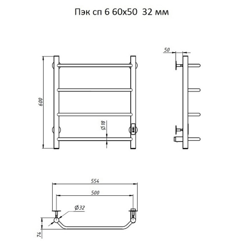 Полотенцесушитель Пэк сп 6 60х50 32 мм. Коллекция: ПЭК сп 6. Тип: электрический. Форма: лесенка. Мощность (Вт): не более 100Вт. Количество перекладин: 4. Материал: нержавеющая сталь AISI 201. Подключение: скрытое электрическое соединение/электропровод с вилкой.