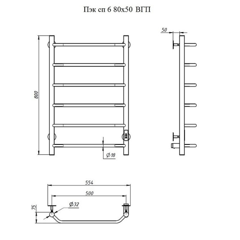 Полотенцесушитель Пэк сп 6 80х50 белый ВГП. Коллекция: ПЭК сп 6. Тип: электрический. Форма: лесенка. Мощность (Вт): не более 100Вт. Количество перекладин: 6. Материал: сталь. Подключение: скрытое электрическое соединение/электропровод с вилкой. Дополнительная информация: выключатель с таймером на 2, 4 и 6 часов работы и терморегулятором встроен в коллектор полотенцесушителя.
