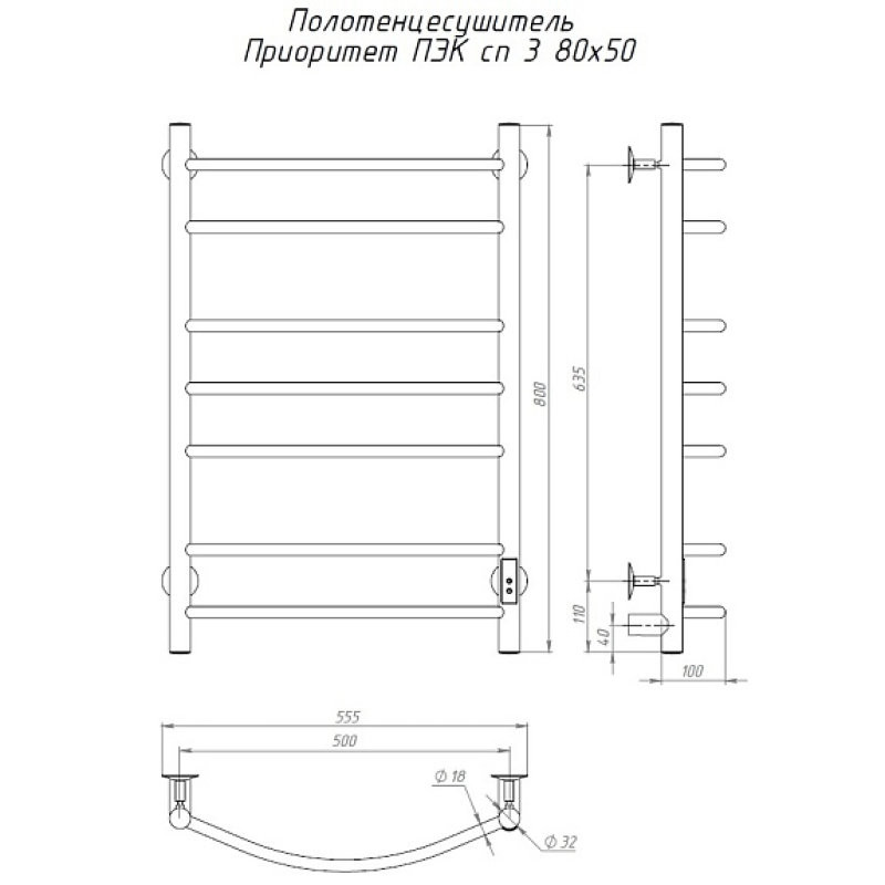 Полотенцесушитель Приоритет Пэк сп 3 80х50 32 мм. Коллекция: Приоритет Пэк сп серия 3. Тип: электрический. Форма: лесенка. Мощность (Вт): не более 100Вт. Количество перекладин: 7. Материал: нержавеющая сталь AISI 201. Подключение: скрытое электрическое соединение/электропровод с вилкой.