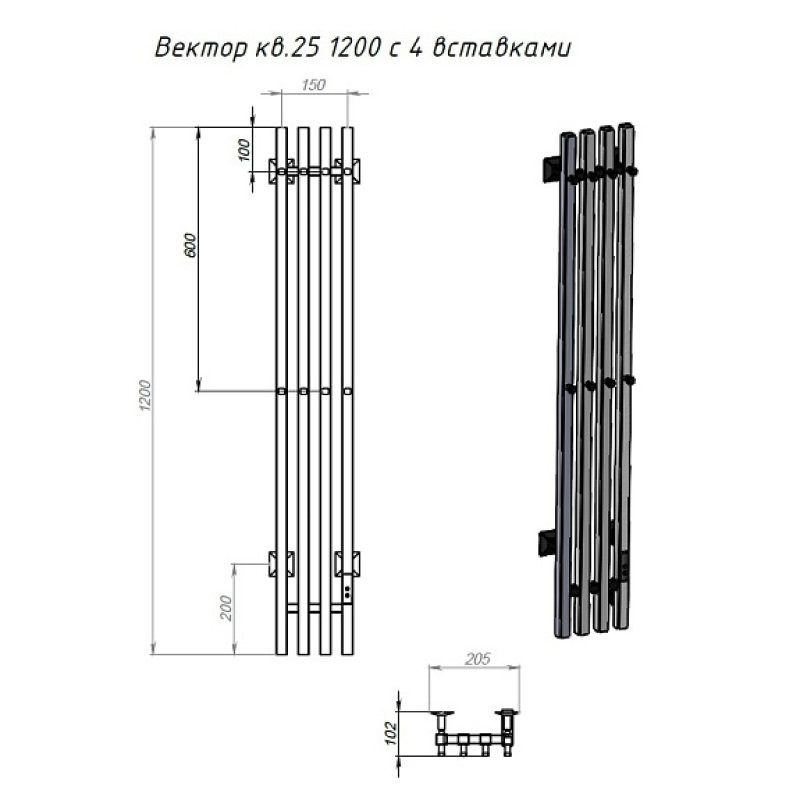Полотенцесушитель Пэк сп Вектор кв 4 120*15 черный ВГП. Коллекция: Пэк сп Вектор кв 4. Тип: электрический. Форма: нестандартная. Мощность (Вт): не более 100Вт. Количество перекладин: 4. Материал: сталь. Подключение: скрытое электрическое соединение/электропровод с вилкой. Дополнительная информация: выключатель с таймером на 2, 4 и 6 часов работы и терморегулятором встроен в коллектор полотенцесушителя.