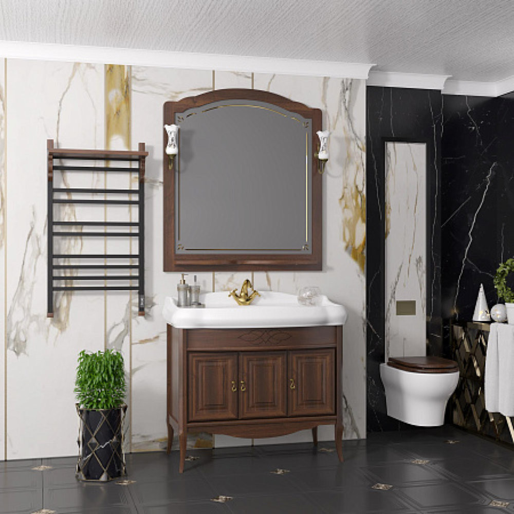Полотенцесушитель электрический OPADIRIS Лоренцо OS41359BN с полкой, черный матовый/светлый орех