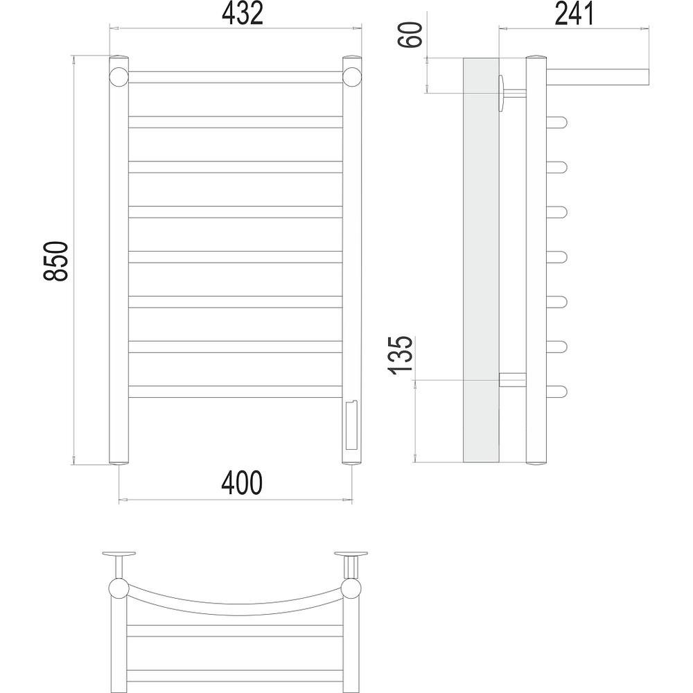 Полотенцесушитель электрический арт.: 4670078531407. Бренд: Terminus. Тип подключения: справа. Материал: нержавеющая сталь. Теплоноситель: греющий кабель. Форма: лесенка. 3 режима работы таймера.