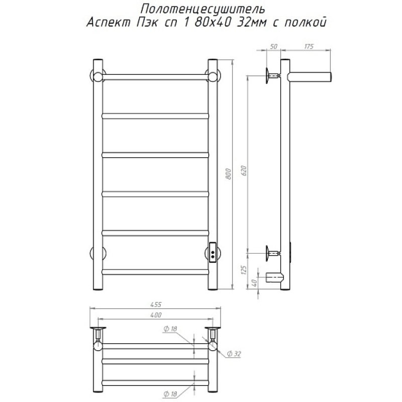 Полотенцесушитель Аспект Пэк сп 1 П 80х40 32 мм. Коллекция: Аспект Пэк сп серия 1. Тип: электрический. Форма: лесенка. Мощность (Вт): не более 100Вт. Количество перекладин: 5. Материал: нержавеющая сталь AISI 201. Подключение: скрытое электрическое соединение/электропровод с вилкой.