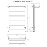 Полотенцесушитель Аспект Пэк сп 1 П 80х50 графит ВГП. Коллекция: Аспект Пэк сп 1 серия. Тип: электрический. Форма: лесенка. Мощность (Вт): не более 100Вт. Количество перекладин: 6. Материал: сталь. Подключение: скрытое электрическое соединение/электропровод с вилкой. Дополнительная информация: выключатель с таймером на 2, 4 и 6 часов работы и терморегулятором встроен в коллектор полотенцесушителя.