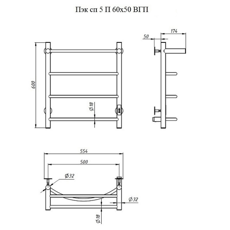 Полотенцесушитель Пэк сп 5 П 60х50 черный ВГП. Коллекция: ПЭК сп 5. Тип: электрический. Форма: лесенка. Мощность (Вт): не более 100Вт. Количество перекладин: 4. Материал: сталь. Подключение: скрытое электрическое соединение/электропровод с вилкой. Дополнительная информация: выключатель с таймером на 2, 4 и 6 часов работы и терморегулятором встроен в коллектор полотенцесушителя.
