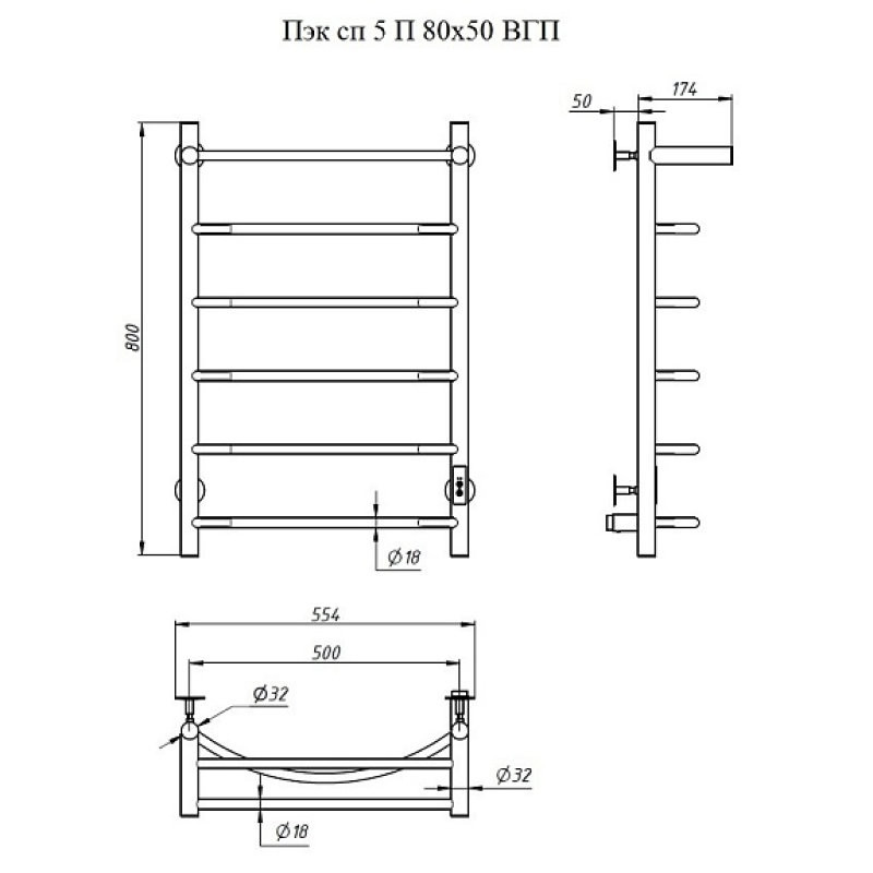 Полотенцесушитель Пэк сп 5 П 80х50 черный ВГП. Коллекция: ПЭК сп 5. Тип: электрический. Форма: лесенка. Мощность (Вт): не более 100Вт. Количество перекладин: 6. Материал: сталь. Подключение: скрытое электрическое соединение/электропровод с вилкой. Дополнительная информация: выключатель с таймером на 2, 4 и 6 часов работы и терморегулятором встроен в коллектор полотенцесушителя.