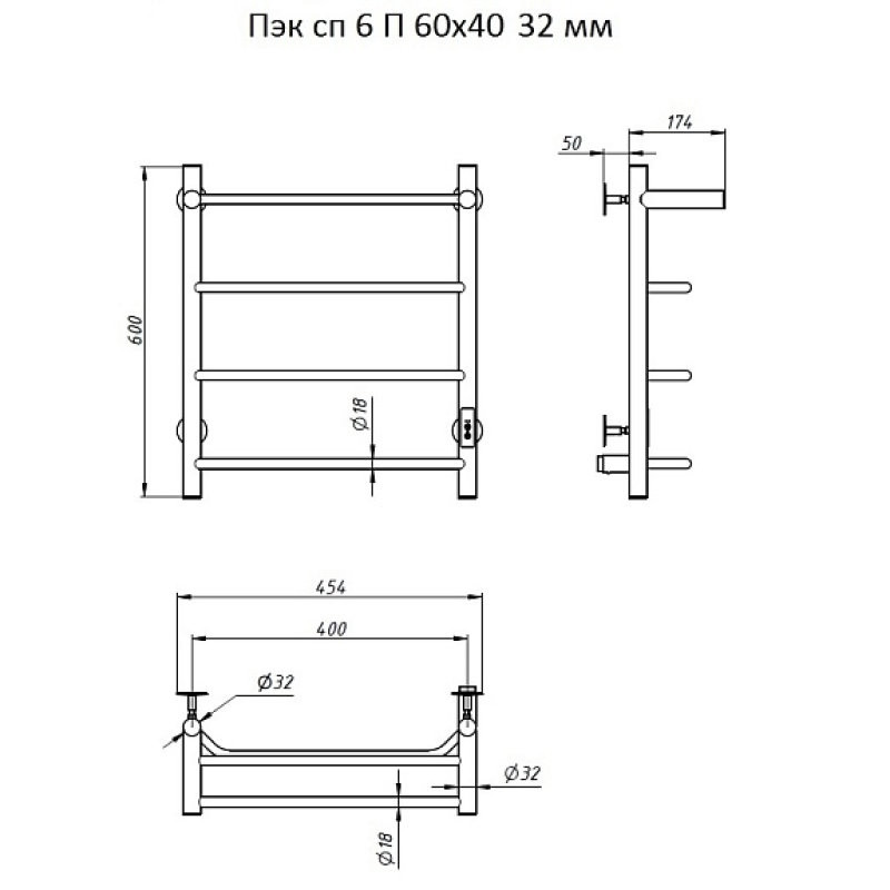 Полотенцесушитель Пэк сп 6 П 60х40 32 мм. Коллекция: ПЭК сп 6. Тип: электрический. Форма: лесенка. Мощность (Вт): не более 100Вт. Количество перекладин: 3. Материал: нержавеющая сталь AISI 201. Подключение: скрытое электрическое соединение/электропровод с вилкой.