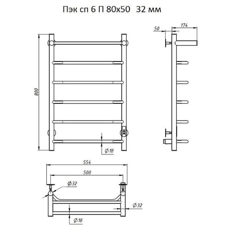 Полотенцесушитель Пэк сп 6 П 80х50 32 мм. Коллекция: ПЭК сп 6. Тип: электрический. Форма: лесенка. Мощность (Вт): не более 100Вт. Количество перекладин: 5. Материал: нержавеющая сталь AISI 201. Подключение: скрытое электрическое соединение/электропровод с вилкой.
