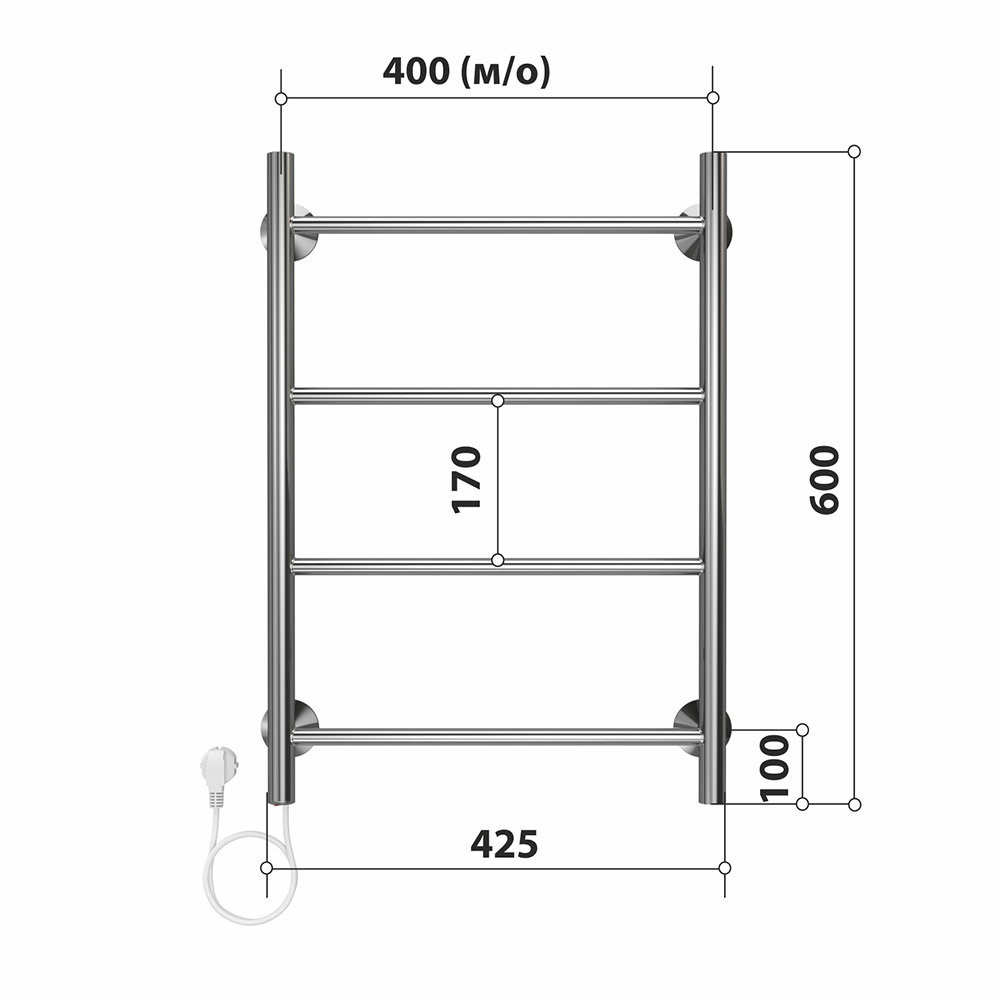Комплектация: полотенцесушитель, крепление, электрический кабель, вилка;