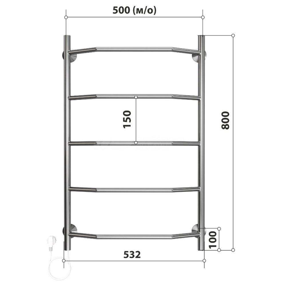 Комплектация: полотенцесушитель, крепление, электрический кабель, вилка;