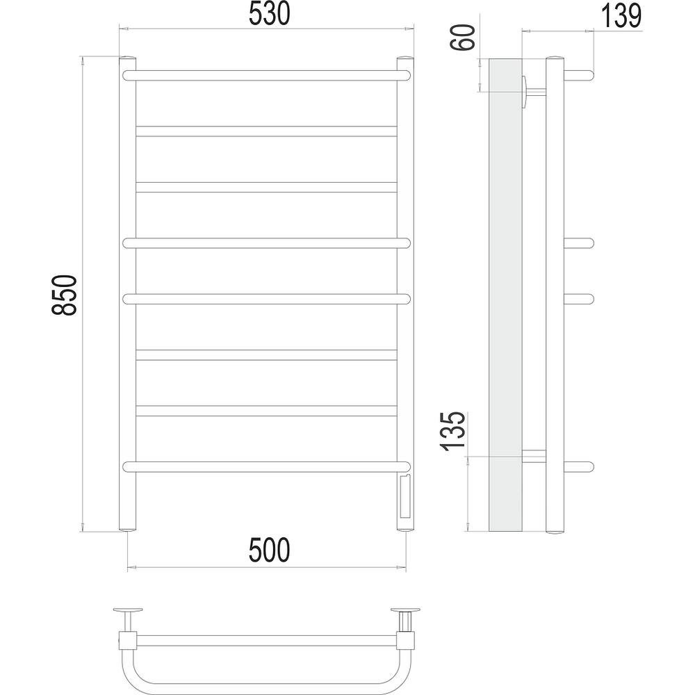 Полотенцесушитель электрический арт.: 4670078531254. Бренд: Terminus. Тип подключения: справа. Материал: нержавеющая сталь. Теплоноситель: греющий кабель. Форма: лесенка. 3 режима работы таймера.