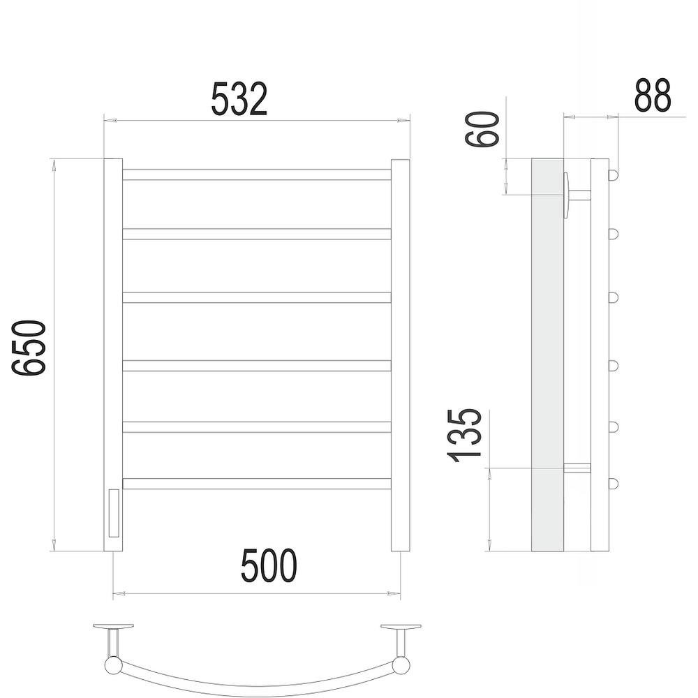 Полотенцесушитель электрический Terminus Классик П6 50х65, левый