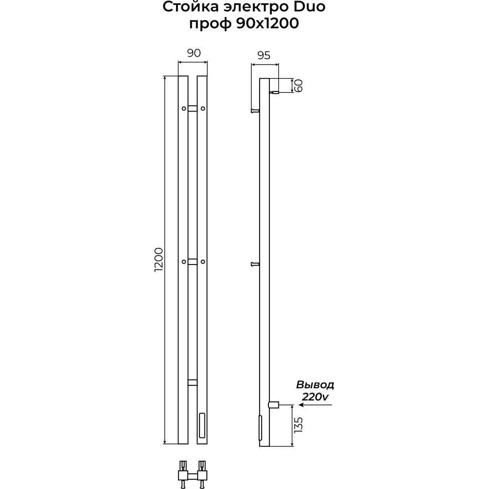 Полотенцесушитель электрический Terminus Стойка DUO проф 120, черный