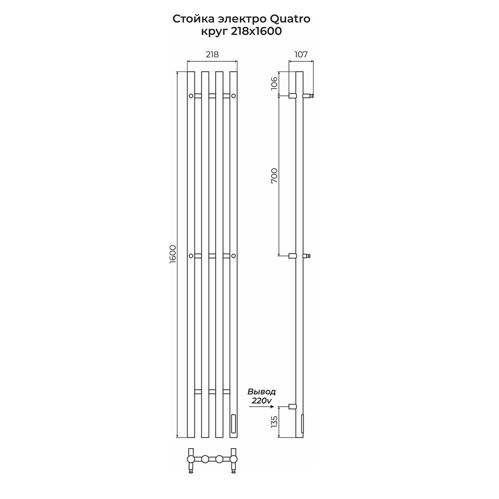 Полотенцесушитель электрический Terminus Стойка QUATRO круг 160, черный муар