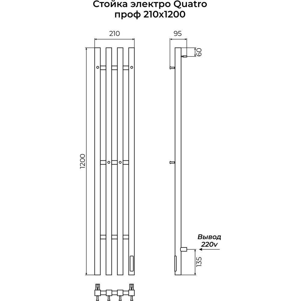 Полотенцесушитель электрический Terminus Стойка QUATRO проф 120, белый