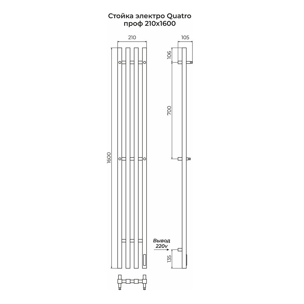 Полотенцесушитель электрический Terminus Стойка QUATRO проф 160